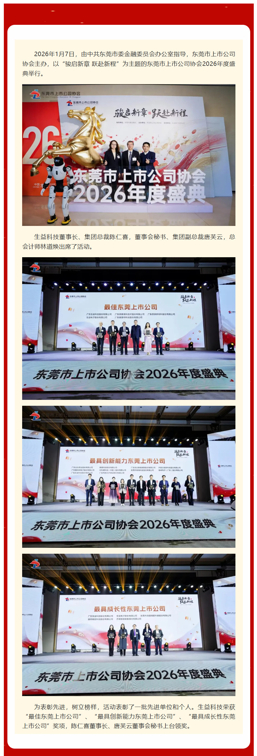 生益科技荣获东莞市上市公司协会2026年度盛典多个奖项