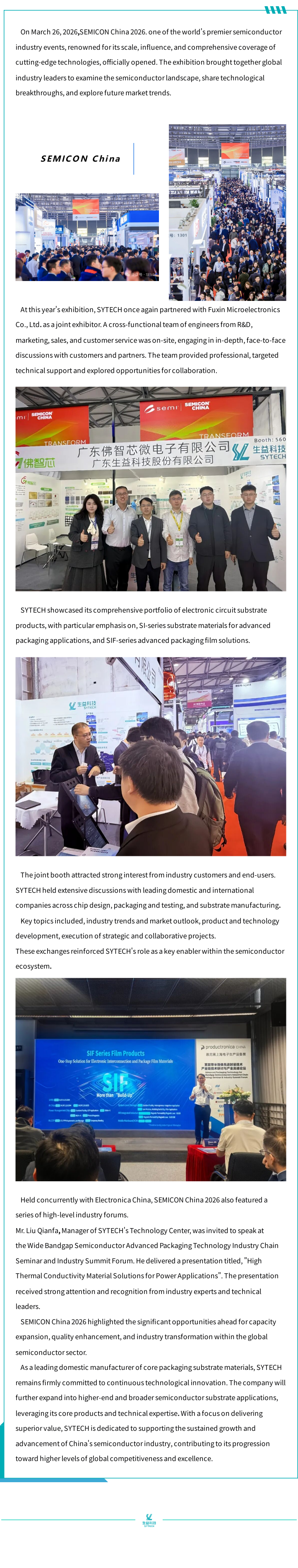SYTECH Showcases Advanced Packaging Substrates, Powering China's Semiconductor Industry Upgrade at SEMICON China 2026